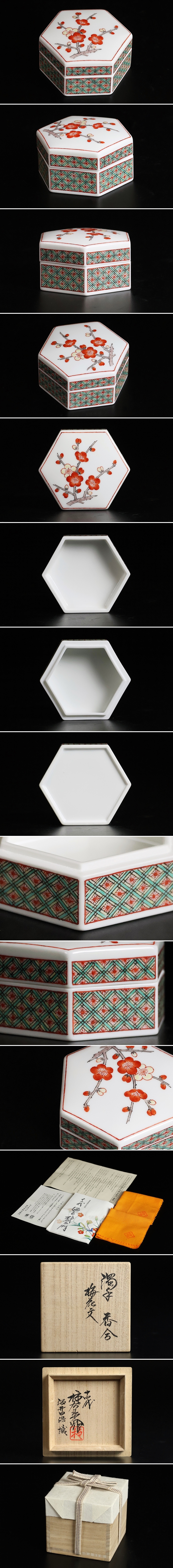 > 【 十四代酒井田柿右衛門 】本人作 濁手梅花文香合 人間国宝 共箱 保証 17129