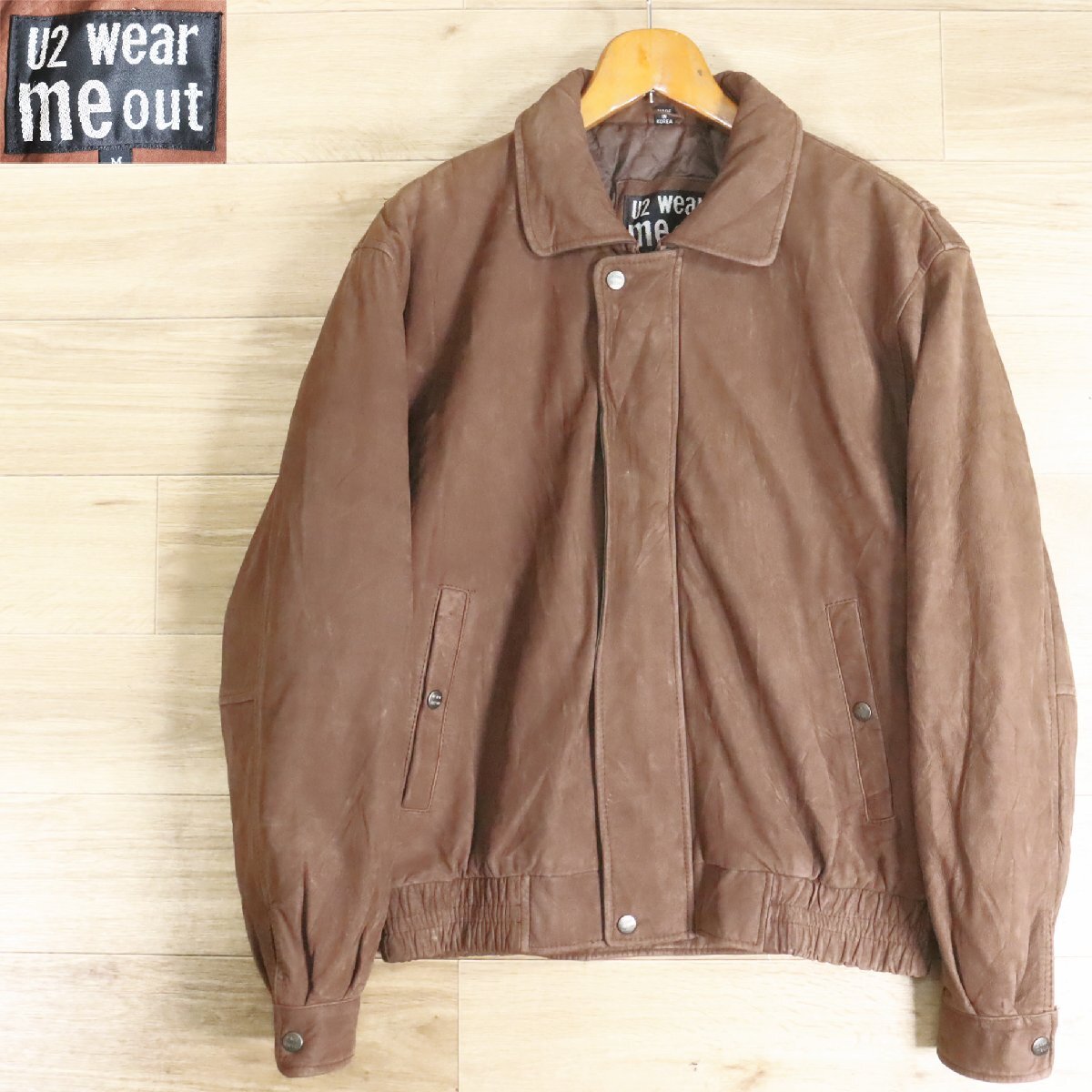 - *10K/Y6.2-12 U2 WEAR me out レザージャケット 本革 レザーブルゾン 革ジャン 皮ジャン ジップアップジャケット ブラウン M