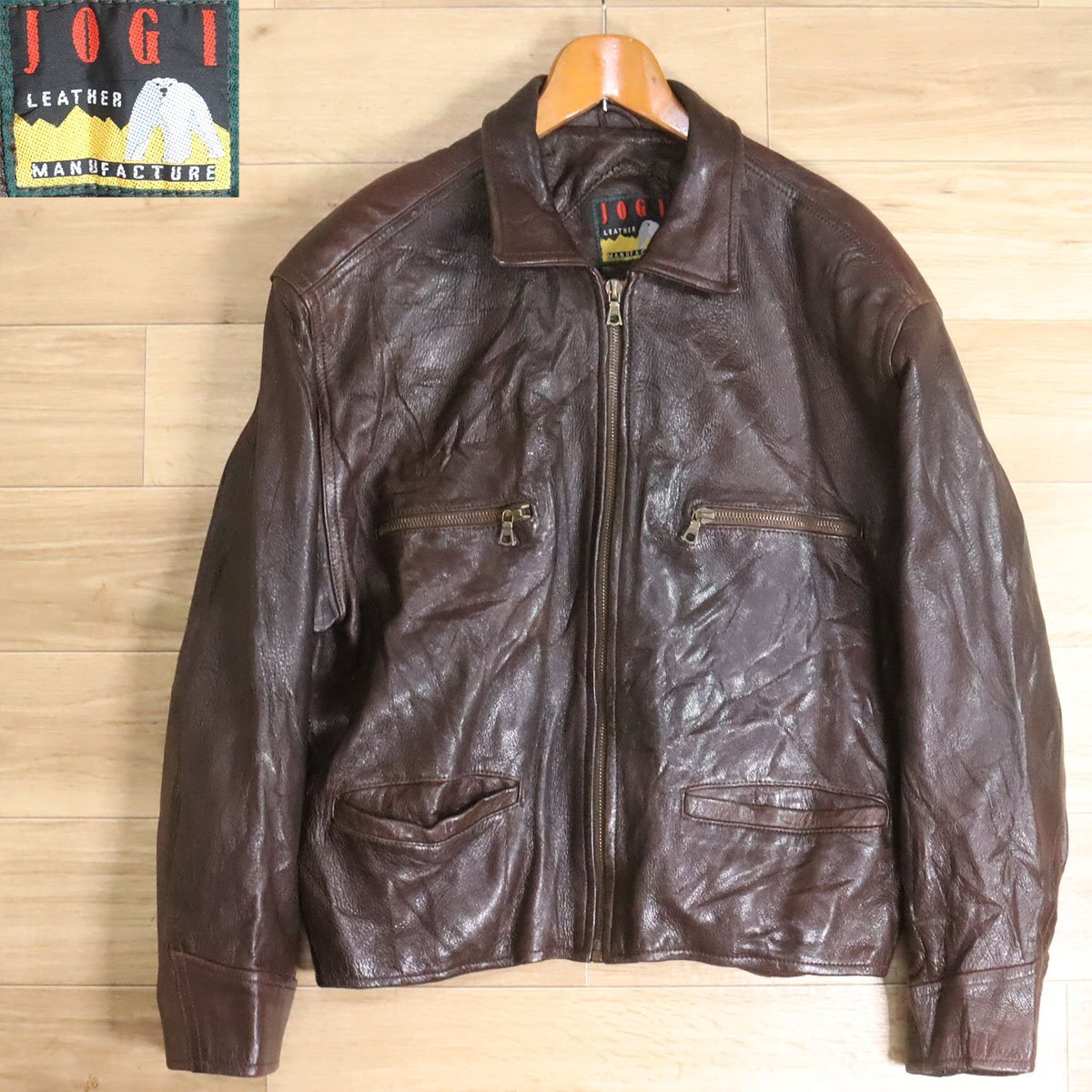 - N14O/Y5.13-7 JOGI レザージャケット シングルライダース 本革 レザーブルゾン 革ジャン 皮ジャン メンズ M ブラウン系
