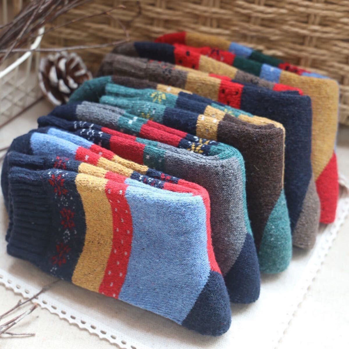> 北歐風 韓国 極厚暖かい抗寒 冷え性対策 レディースソックス ウール混冬 5足セット まとめ売り 裏起毛クルー丈 女性靴下
