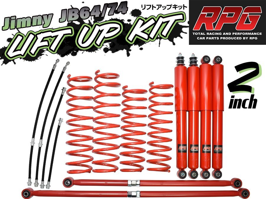 > ジムニー JB64W JB74W 2インチリフトアップキット RPGロングショック赤 ラテラル赤 コイル赤 ロングブレーキホース