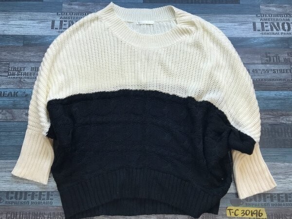 - PRIVATE BEACH レディース バイカラー アクリルニット ドルマン セーター F 白黒