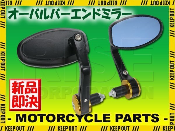 - 汎用 オーバルバーエンドミラー ゴールド マットブラック 左右セット ブルーレンズ XJ6 CB400SF ズーマー カブグロム エイプ グロム リード