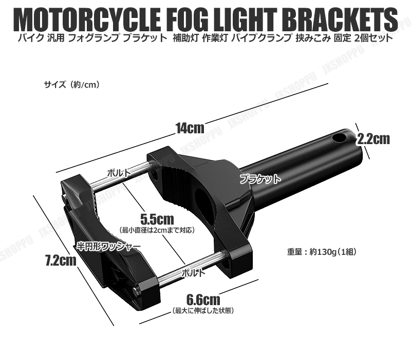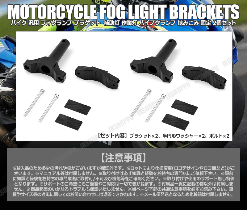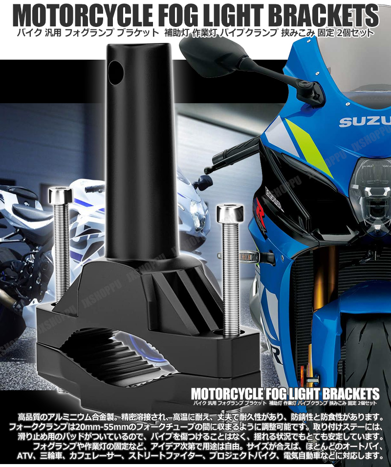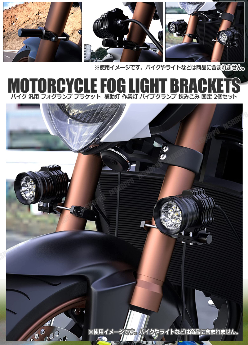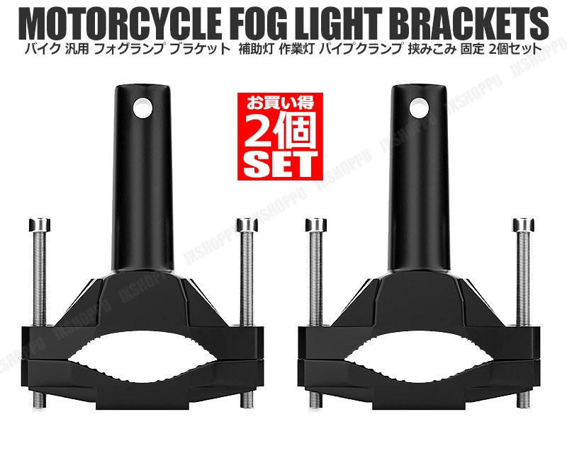 > 送料0円 バイク用 汎用 フォグランプブラケット 2個セット 補助灯や作業灯に パイプクランプ 挟みこみ固定 アルミニウム合金 20mm-55mm
