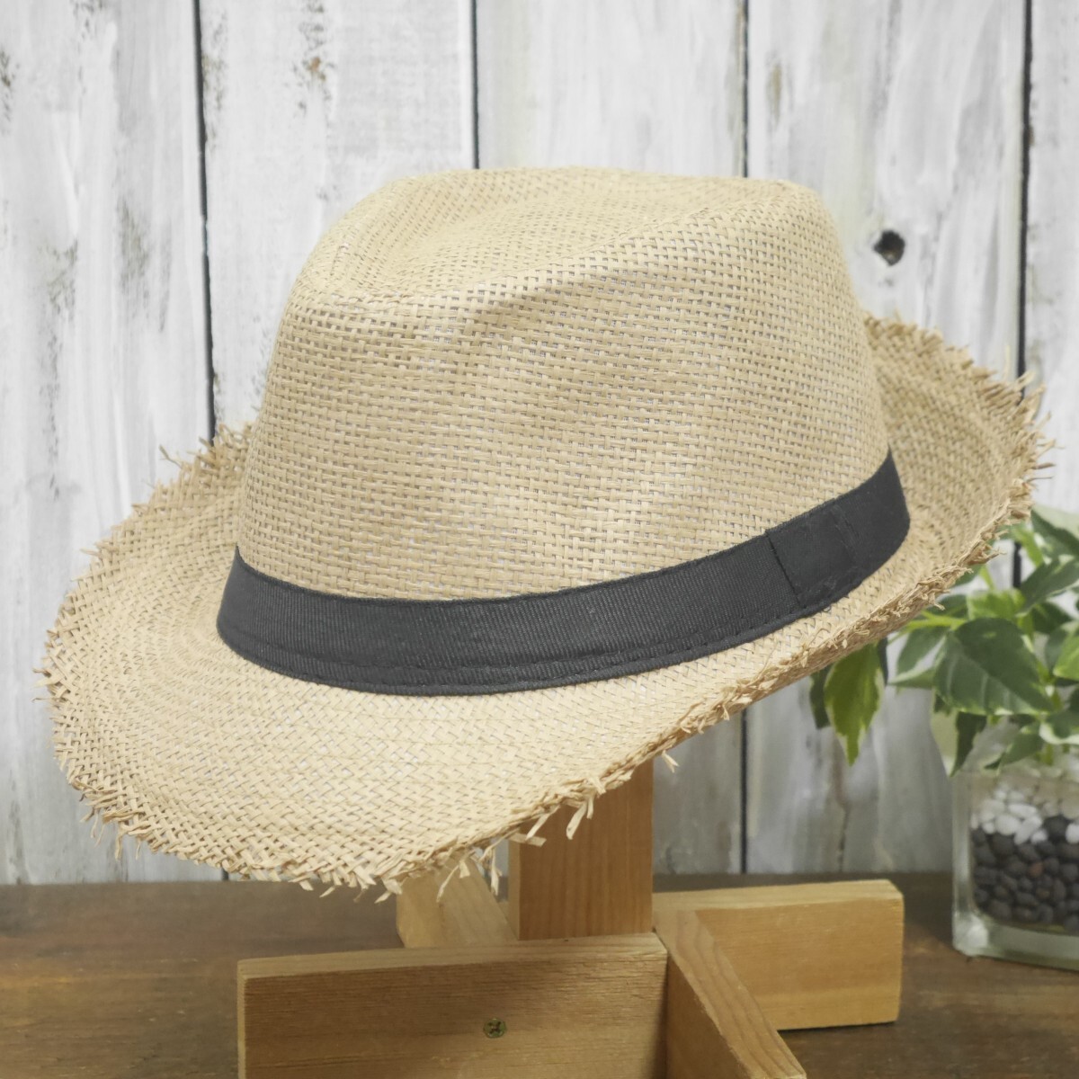 - 全国一律送料450円 麦わら ストローハット 切りっぱなし フェドラハット ベージュ 男女OK ハット パナマ ボルサリーノ 中折れ