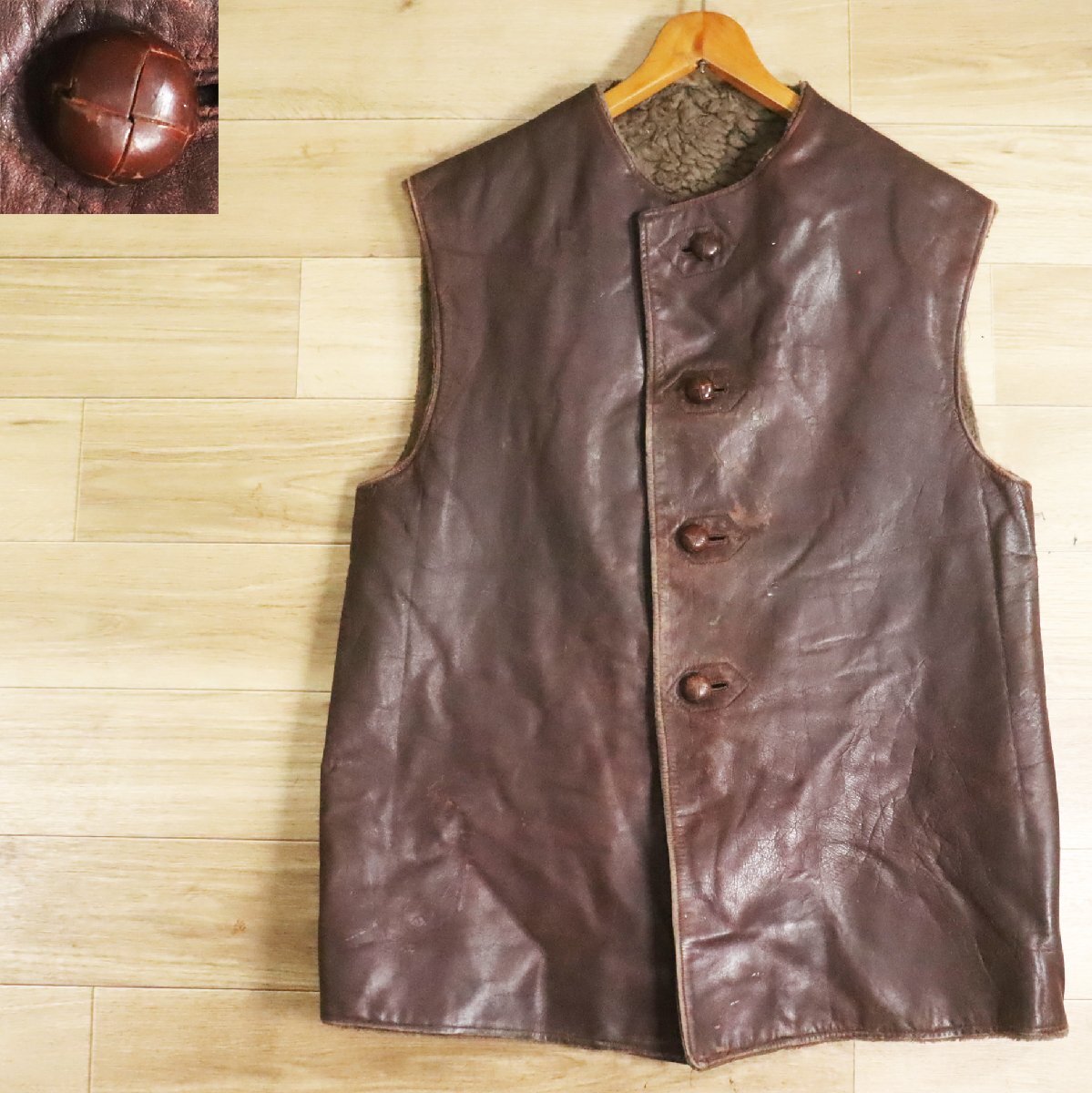 > D7S/S5.27-3 ビンテージ ユーロミリタリー 裏ボア ジャーキンベスト 本革 レザーベスト 革ベスト 皮ベスト ヴィンテージ
