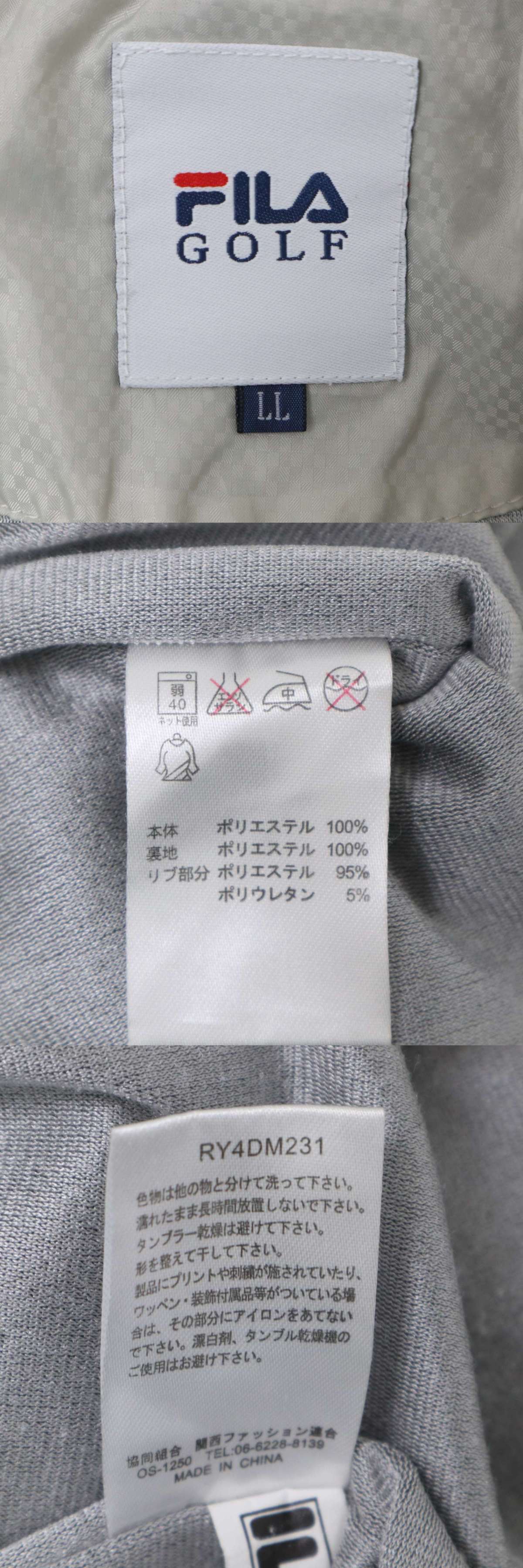 - FILA GOLF フィラ ゴルフ 秋冬 2way 袖着脱可 ロゴ チェック ウィンドブレーカー トレーナー Sz.LL メンズ 灰 大きいサイズ