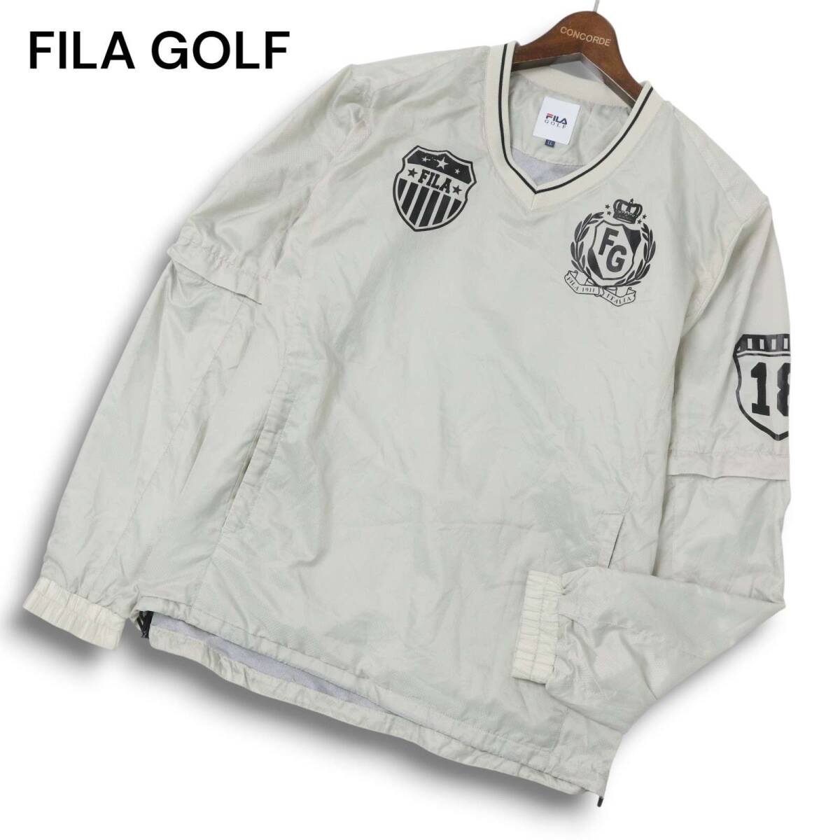 > FILA GOLF フィラ ゴルフ 秋冬 2way 袖着脱可 ロゴ チェック ウィンドブレーカー トレーナー Sz.LL メンズ 灰 大きいサイズ