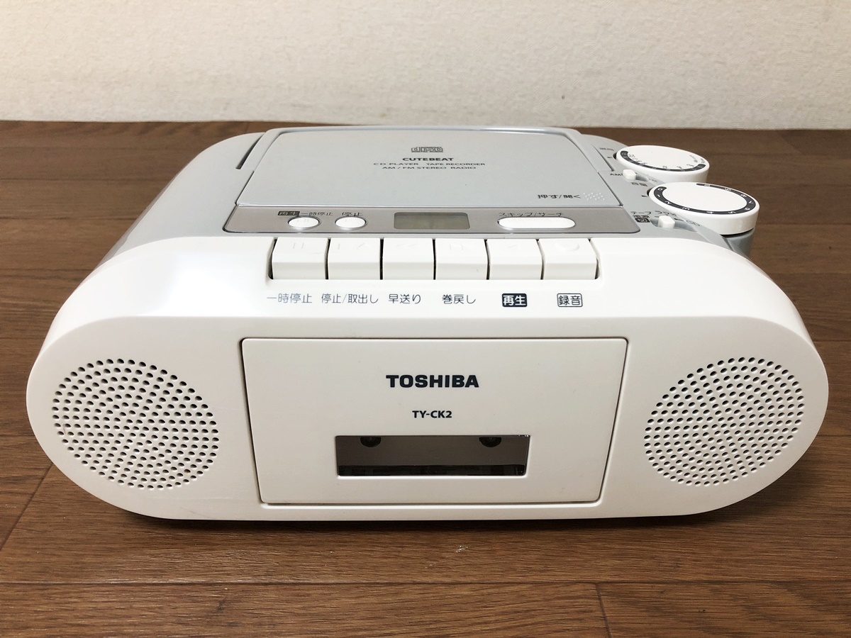 > 東芝CDラジカセ TY-CK2-H ライトグレー 美品 ワイドFM対応 TOSHIBA スピーカー6.6cmφコーン型(8Ω)×2ジャンク扱い 動作確認済み