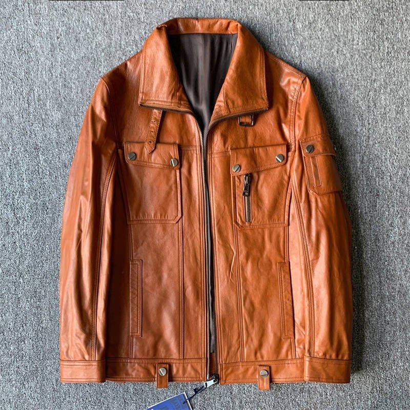 - 人気推薦 定番 EU製 DCKMANY新品 メンズ レザージャケット 上質牛革 革ジャン カーゴ ジャケット シングルライダース/ブラウンB8334-2XL