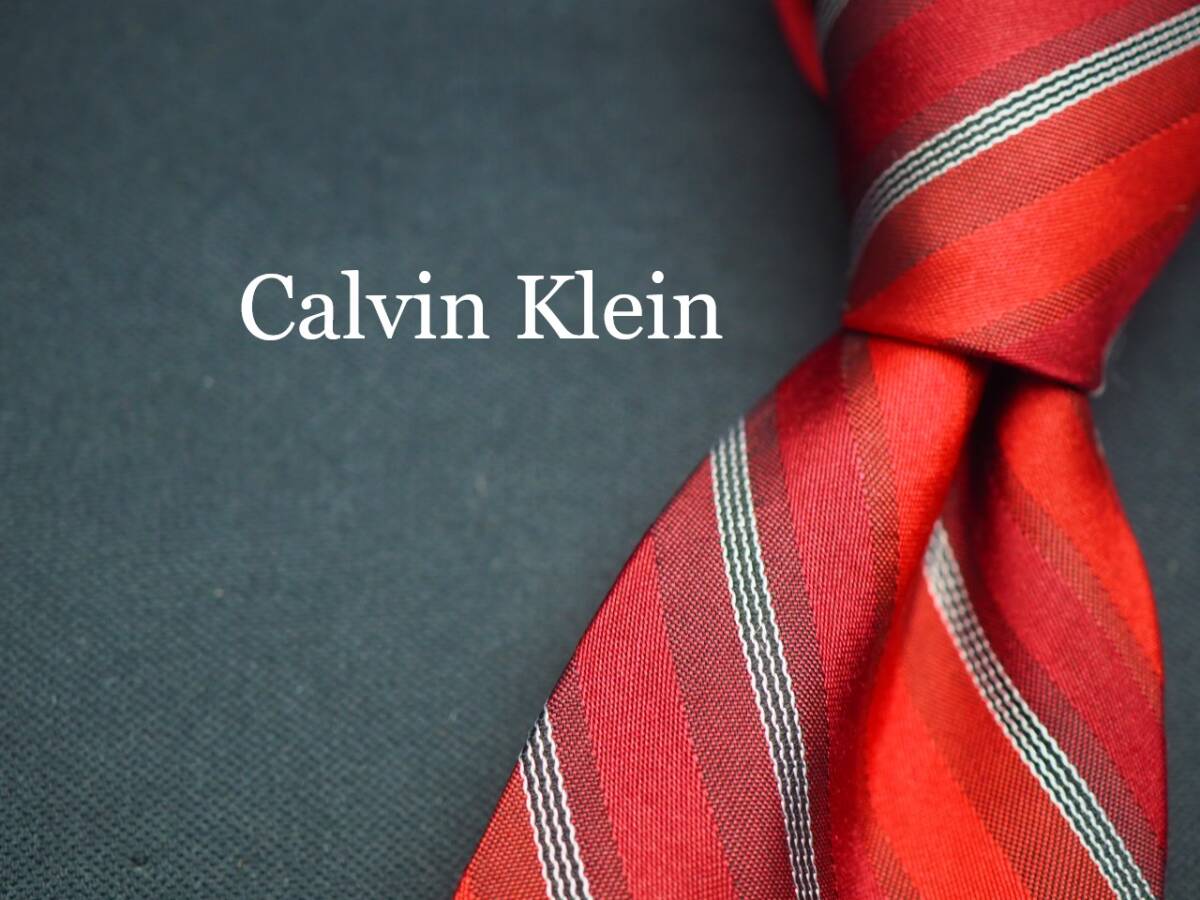 > 美品【Calvin Klein カルバンクライン】 G1003 細身 赤系 SILK ブランド ネクタイ 古着 良品 転売 仕入