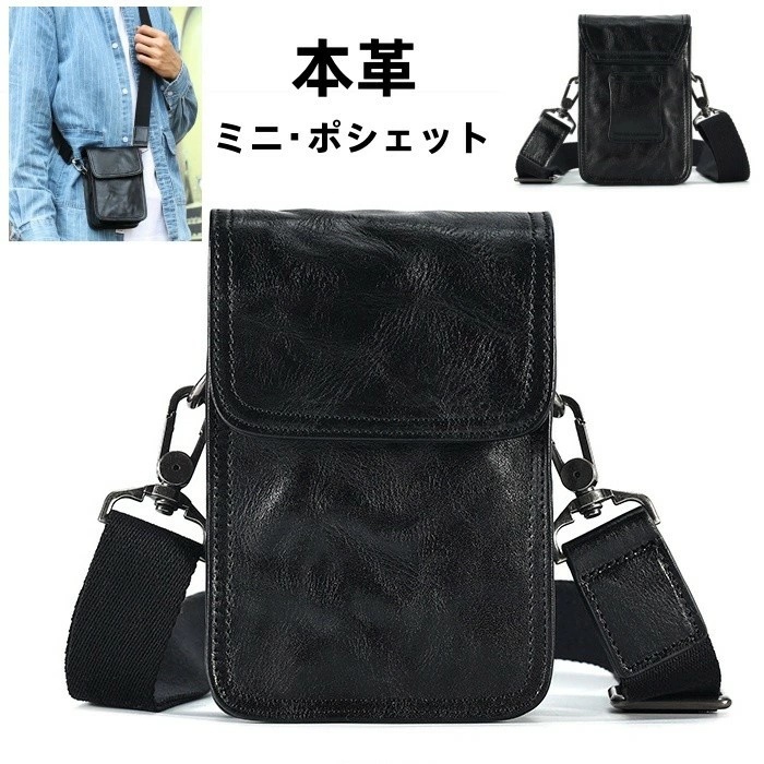 - スマホ ポシェット メンズ 縦 本革 小型のバッグ ミニ ショルダーバッグ メンズバッグ 斜め掛け 鞄 Zbg0714