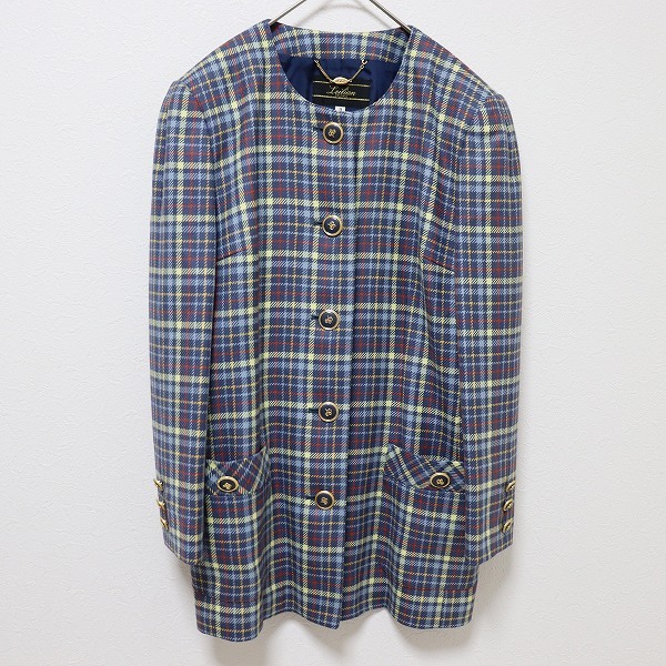 - レリアン Leilian ヴィンテージ ジャケット ノーカラー チェック [x974536n]
