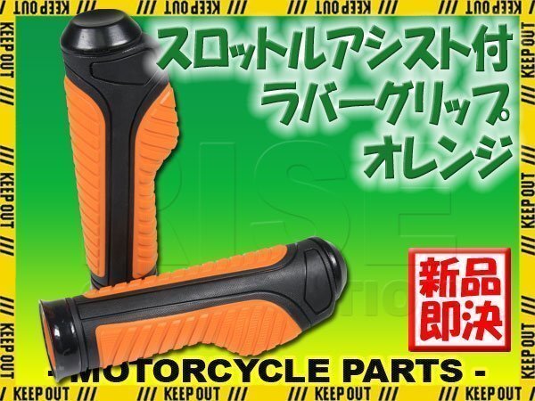 > スロットルアシスト付 ラバーグリップ 22.2mm オレンジ 汎用 ハンドル 左右セット バイク オートバイ CB223 CBR250R CB400SF CBR400R MT-25