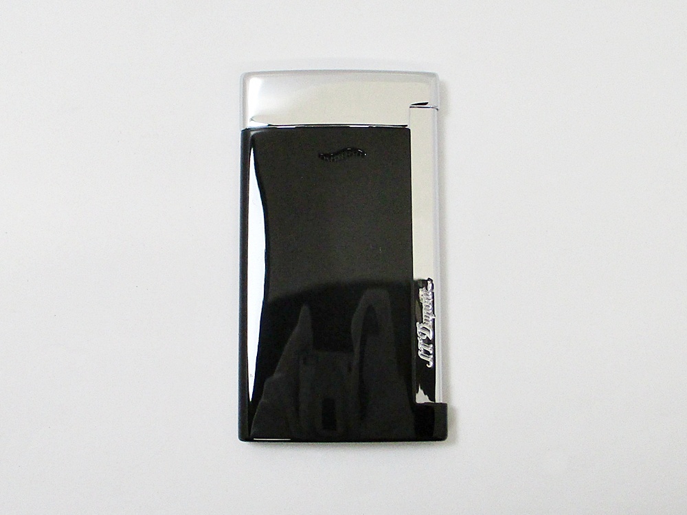 > B25-2501 S.T.Dupont デュポン ターボライター スリム7 ブラック×シルバー 喫煙具 ブランド 着火確認済み 箱・取扱説明書付き 中古