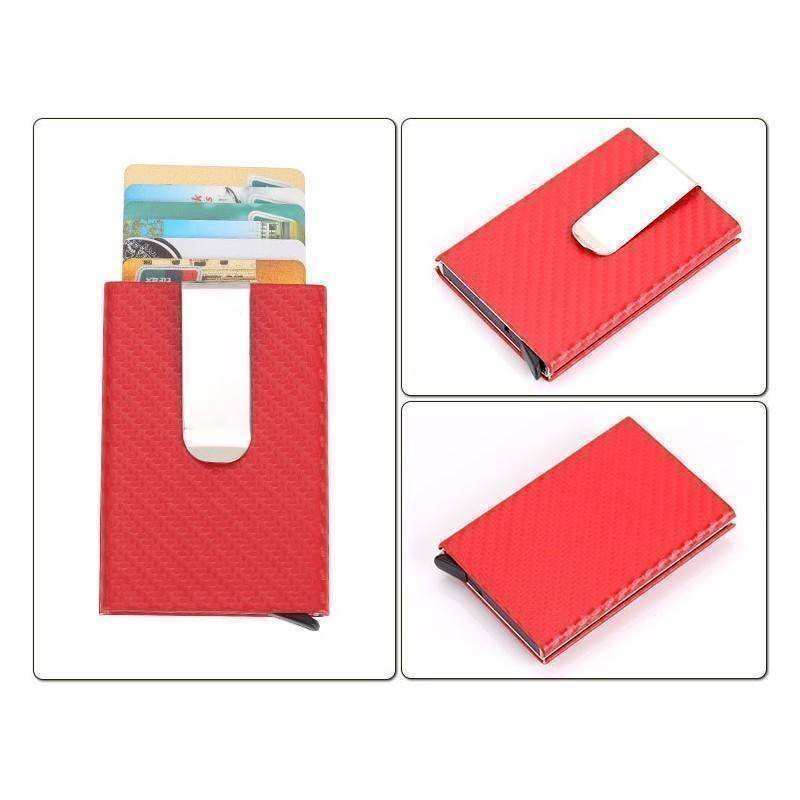 - 送料0円 カードケース 003 [カーボン調赤] スキミング防止 RFID マネークリップ メンズ レディース 薄型 スライド式 アルミ製 磁気防止