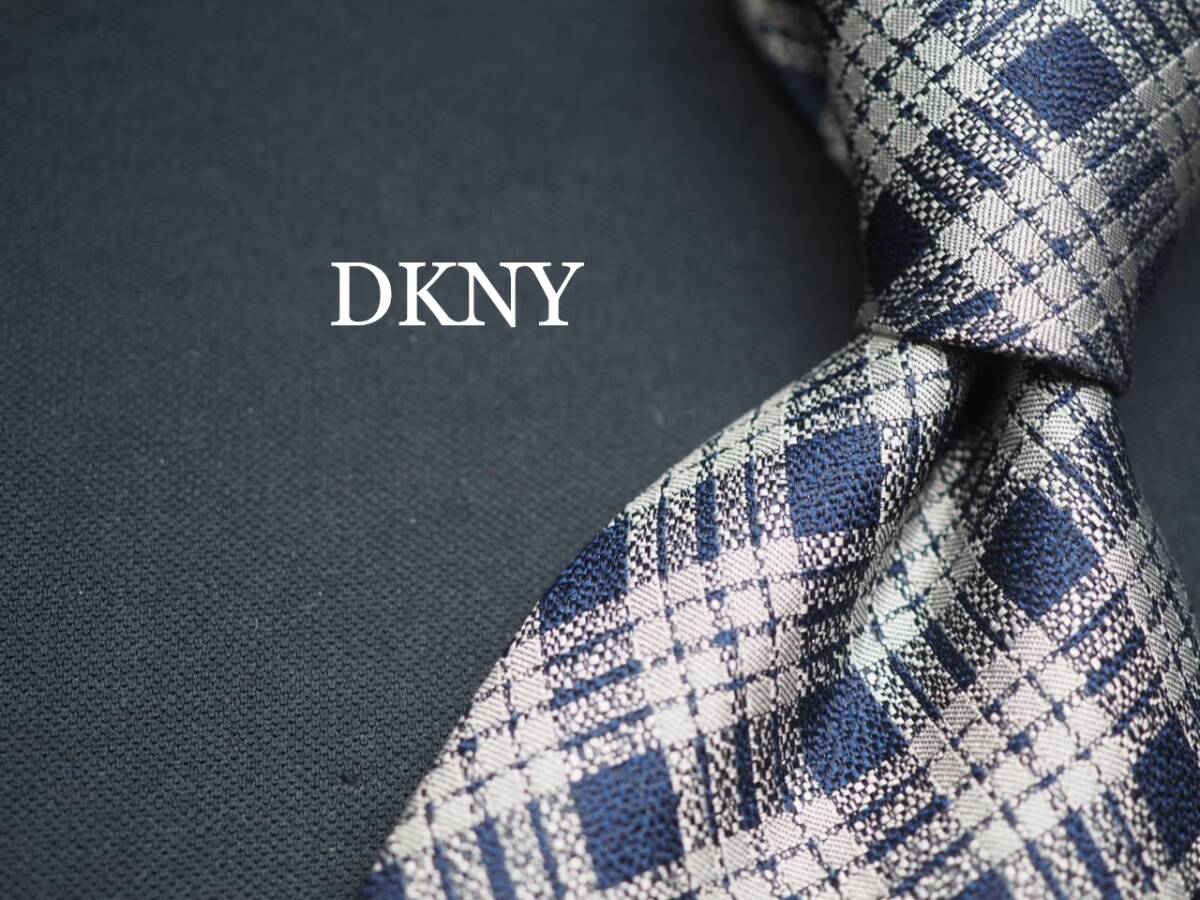 - 美品【DKNY ダナキャラン ニューヨーク】 G1046 シルバーネイビー系 SILK ブランド ネクタイ 古着 良品 転売 仕入