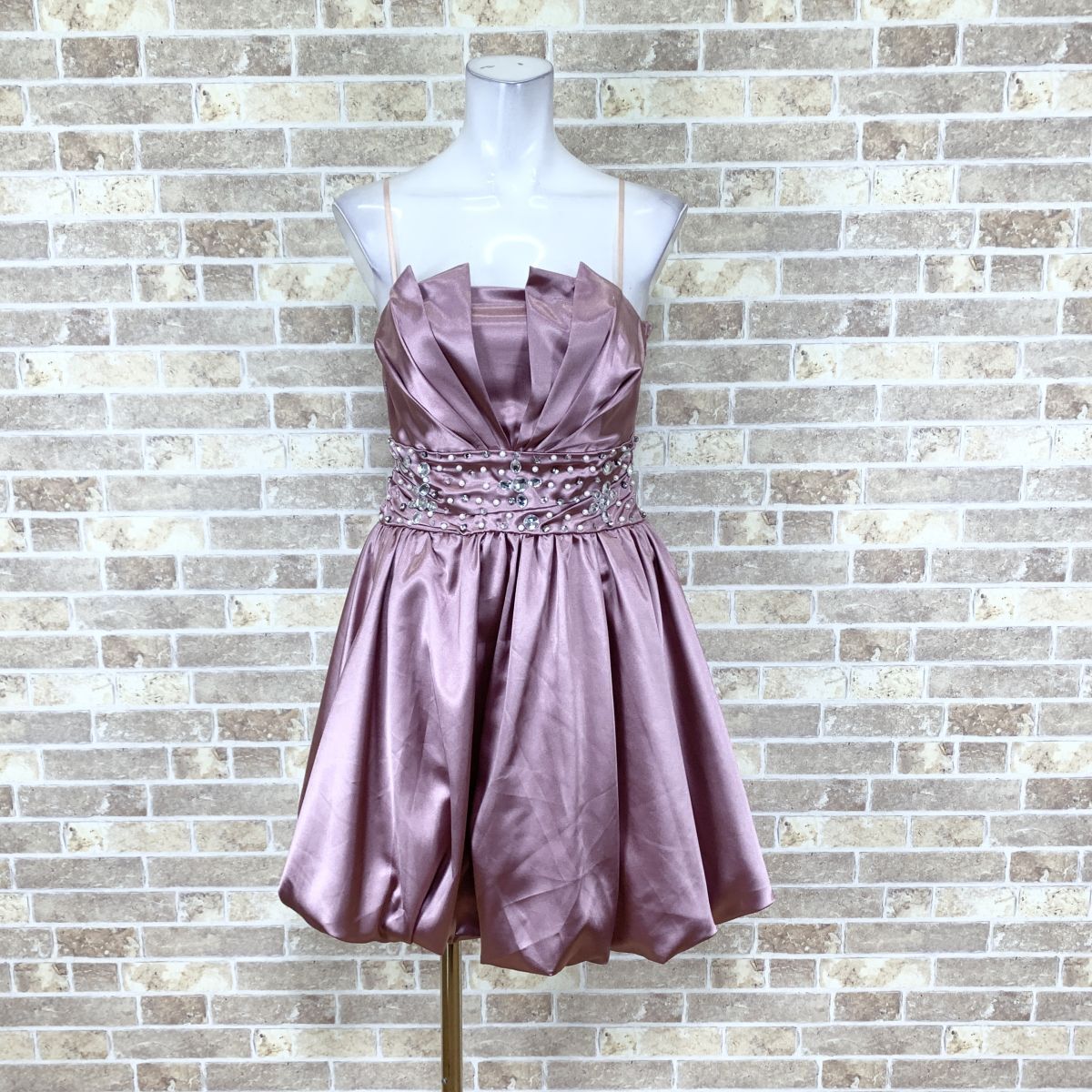 > 1円 ドレス Marry Garet イチオク ワンピース M ピンク系光沢 カラードレス キャバドレ 発表会 イベント 中古16072
