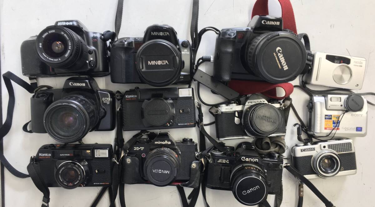 - 1円スタート!ジャンク品 カメラ、ストロボ 計14点セット 一眼レフ フィルムカメラ コンパクトカメラ キヤノン ミノルタ等