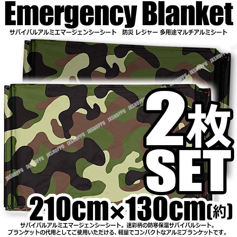 - 送料0円 サバイバルシート 約160x130cm [迷彩グリーン] [2枚セット] 防災 アルミシート エマージェンシーシート カモフラ 防寒 アウトドア