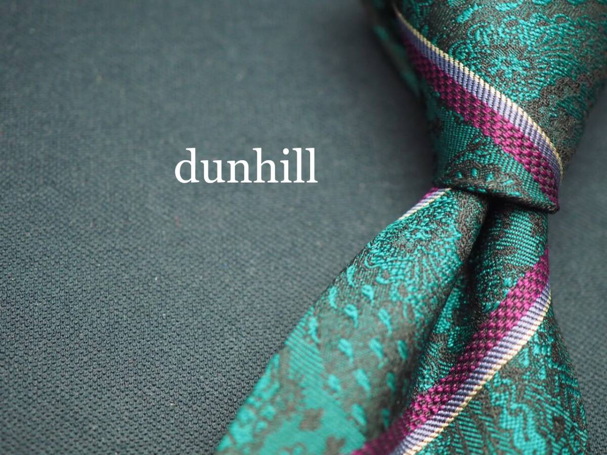 - 美品【dunhill ダンヒル】 G1082 ペイズリー グリーン系 SILK ブランド ネクタイ 古着 良品 転売 仕入