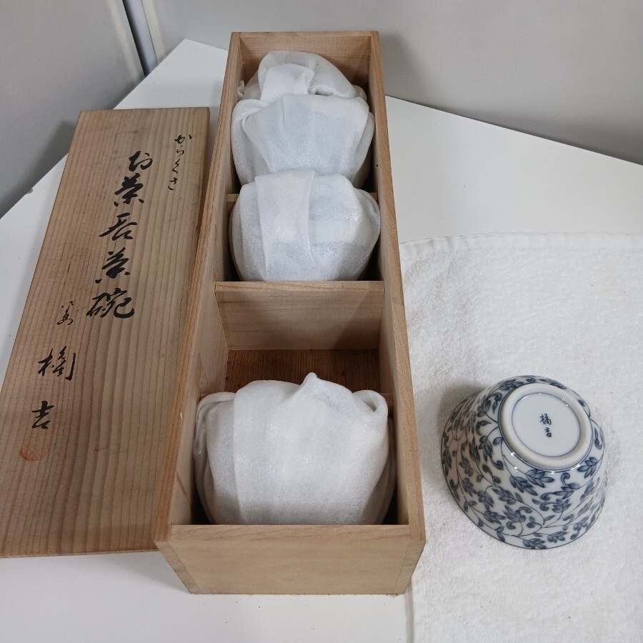 - #852 橘吉 たち吉 お茶呑み茶碗 五客 湯飲み からくさ/和歌山県にて引き取り大歓迎