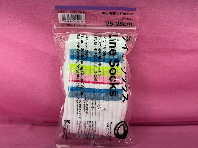 > 251107●○未使用 ファミリーマート ラインソックス 25-28㎝ 2025春の色/ホワイト ファミマ 現状品○●