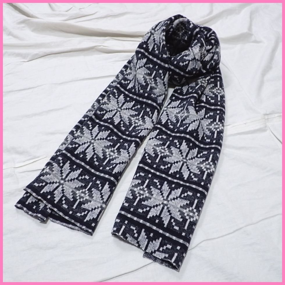 - ★未使用 COMME des GARCONS/コムデギャルソンオム ニットマフラー 約190cm/ブラック×グレー/ノルディック柄/ウール/AD2002&1882900106