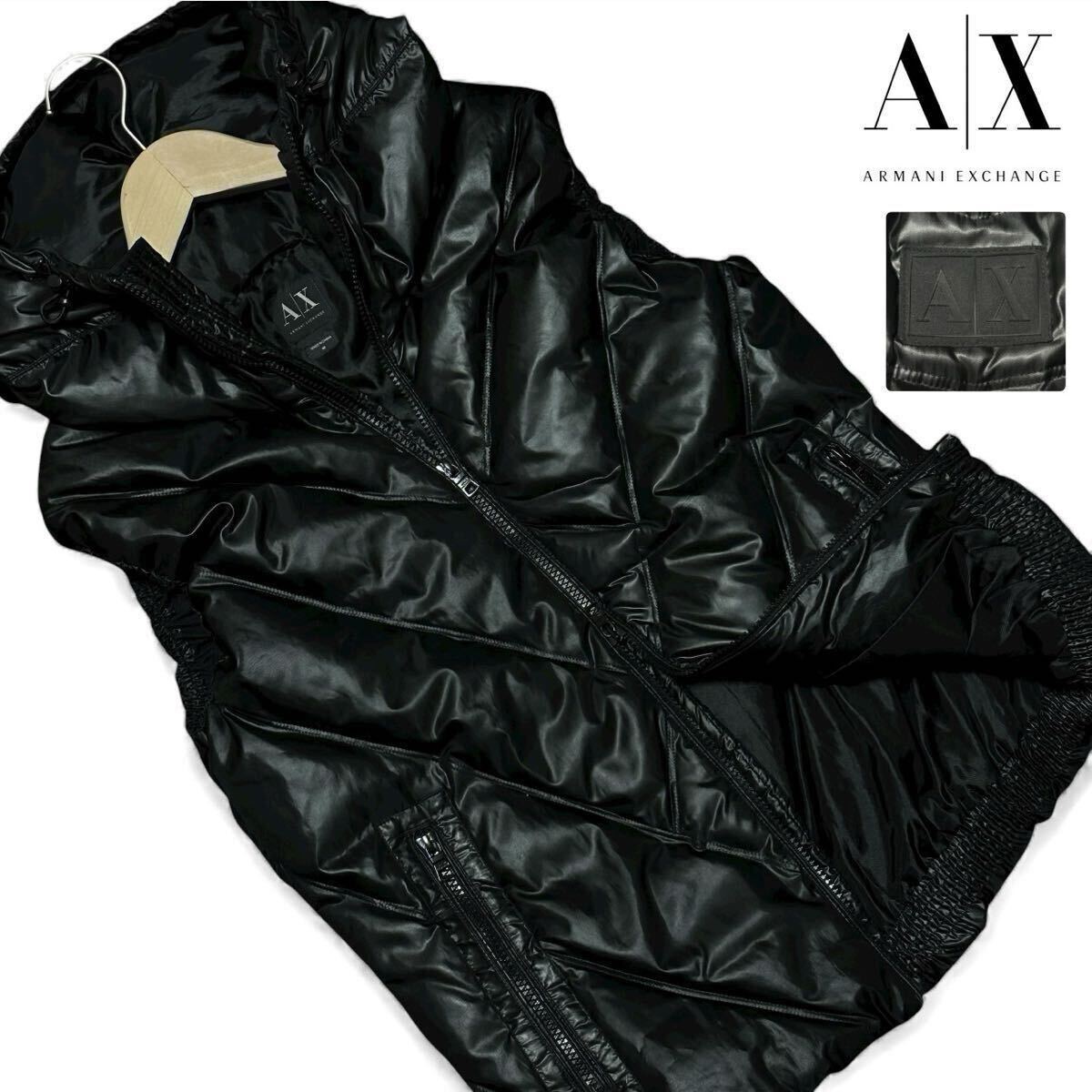 > 極美品●アルマーニ エクスチェンジ『漂う高級感!』キルティング ダウンベスト ジャケット ストレッチ 極暖 AXロゴ M ブラック 黒 ARMANI