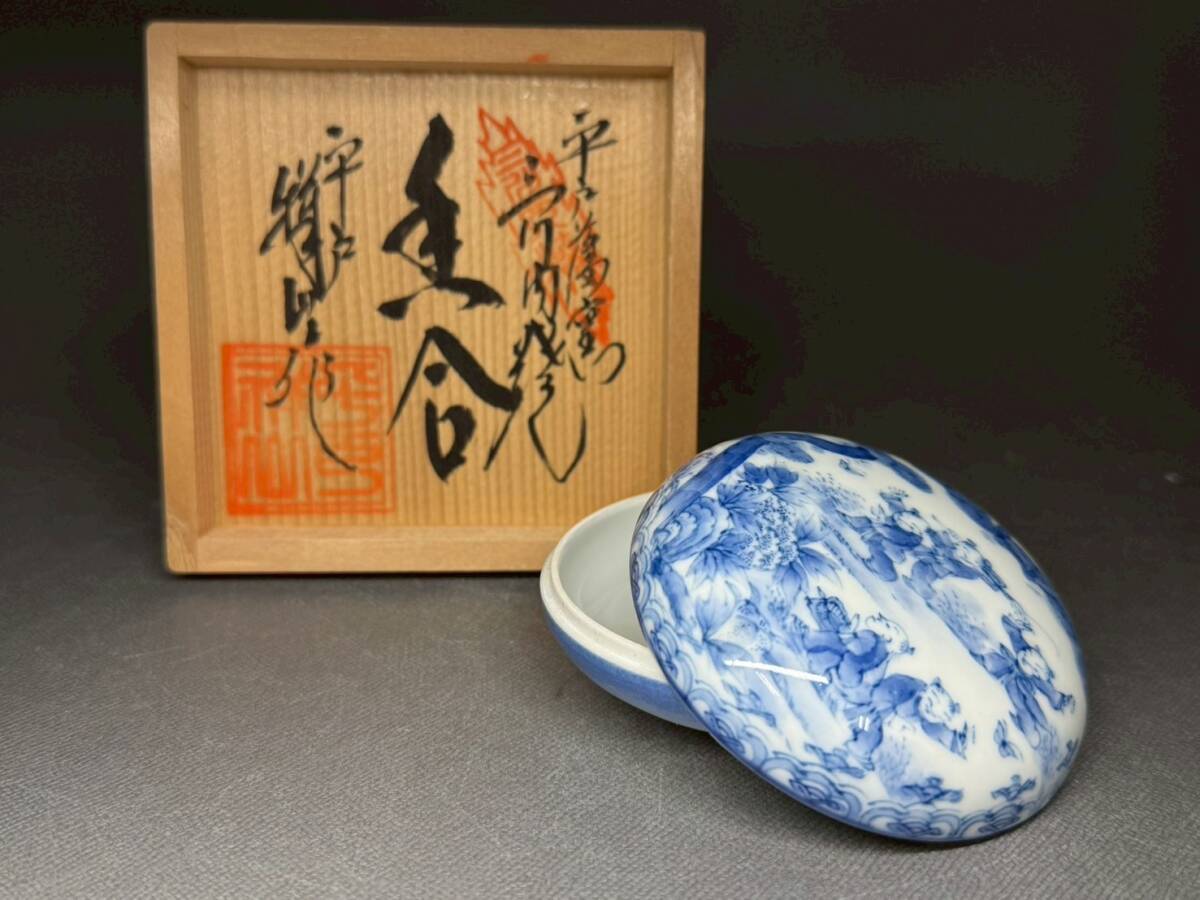 - 三川内焼 平戸窯 香合 平戸祥山作 唐子 染付 骨董 置物 飾物 日本伝統工芸品 芸術 古美術 時代物 在銘 落款 売切 香道具 茶道具6
