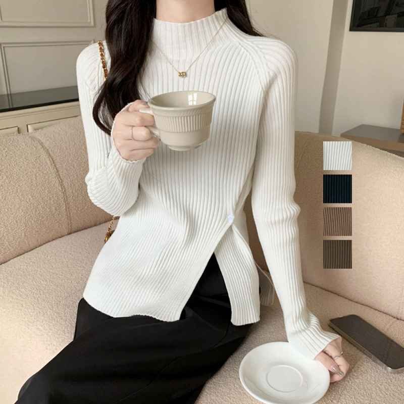 - ニットトップス スリット入り 春秋冬 フリー ブラウン