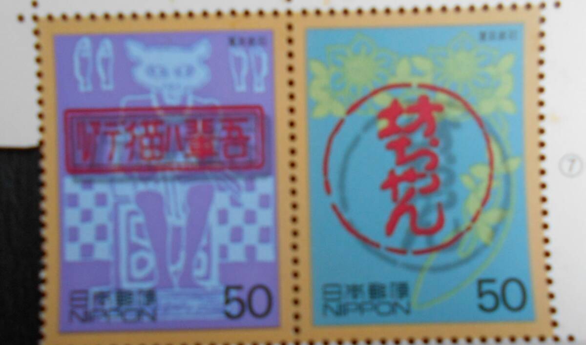> 20世紀デザイン切手第1集⑦⑧ 「吾輩は猫である」「坊ちゃん」夏目漱石 未使用50円切手2種