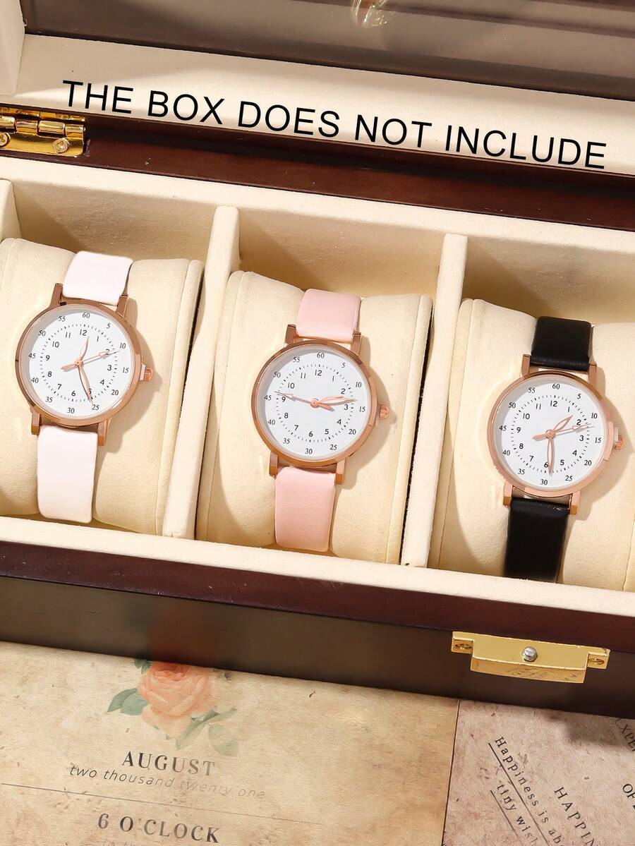 - 腕時計 レディース セット 3個セット シンプルな女性用クォーツ腕時計、レディース腕時計、アラビア数字の丸型ダイヤル、PUレザース