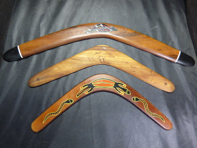 - む861【3点セット】木製ブーメラン オーストラリア アボリジニ 民芸品 お土産 インテリア コレクション