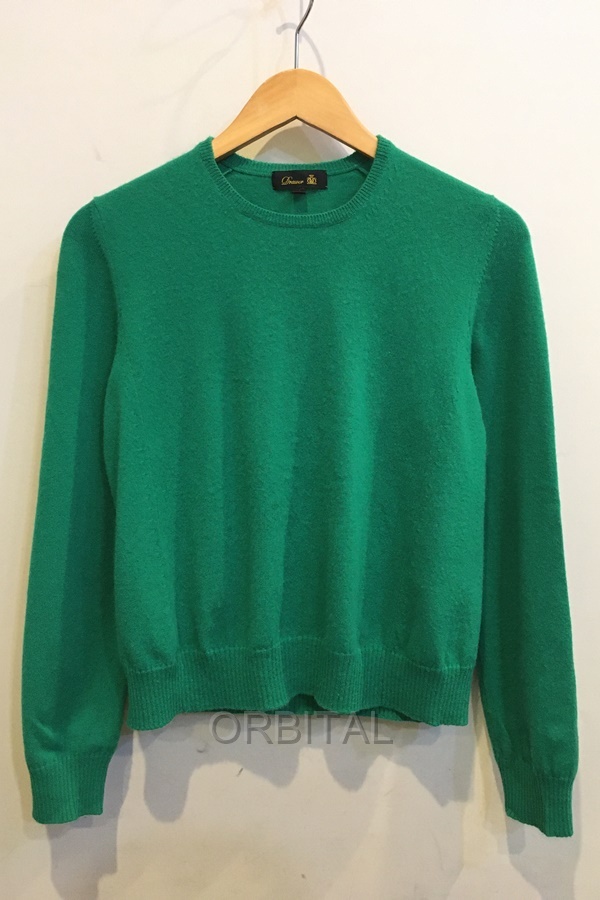 > 二子玉) Drawer ドゥロワー カシミヤ ロングスリーブ クルーネックニット セーター グリーン レディース サイズ1 ※毛羽立ち少々