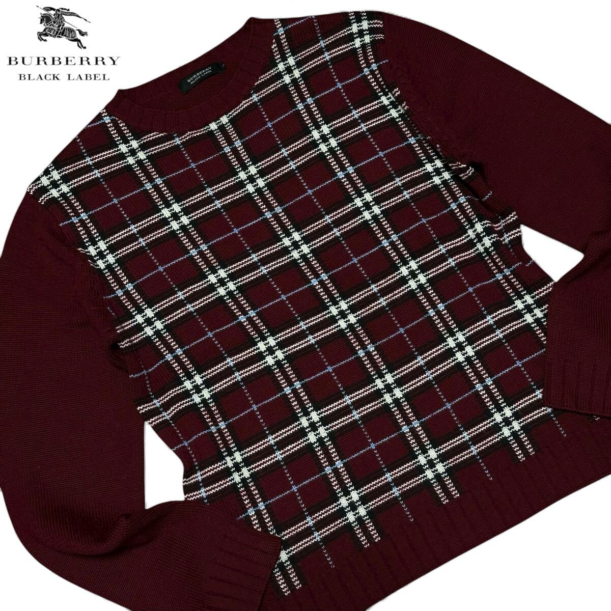 - 極美品/希少!!!●バーバリー ブラックレーベル 廃版モデル 二ット セーター タータンチェック 秋冬 ボルドー 2 BURBERRY BLACK LABEL
