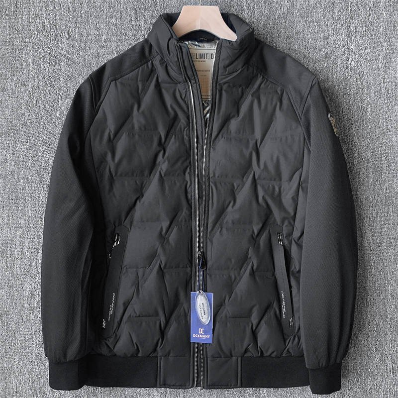- 新品 DCKMANY ダウンジャケット スタンドカラー 切り替えスリーブ 秋冬 シームレスダウン 防風 冬服 保温 メンズ アウター 黒 E510-L
