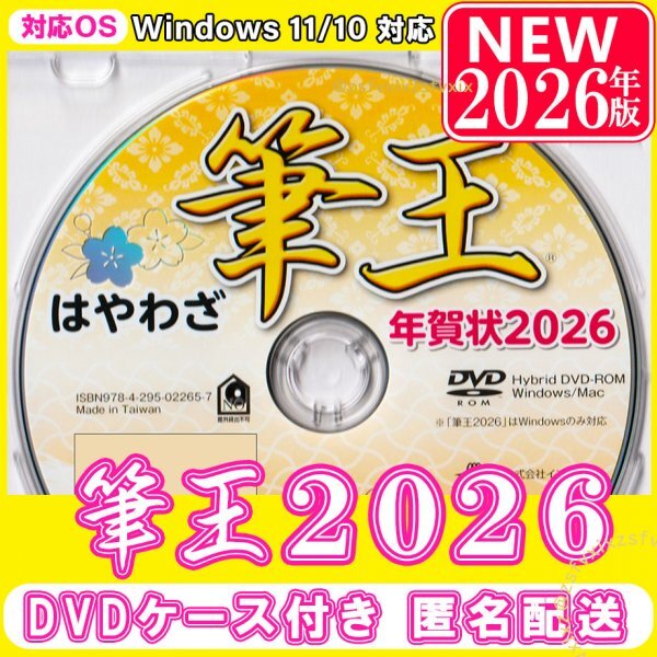 - 筆王 2026 新品 未登録 2026年版 匿名配送 DVD-ROM ケース付 年賀状 ソフト 宛名印刷 住所録 素材集 喪中 葉書 はがき 令和8年 Windows