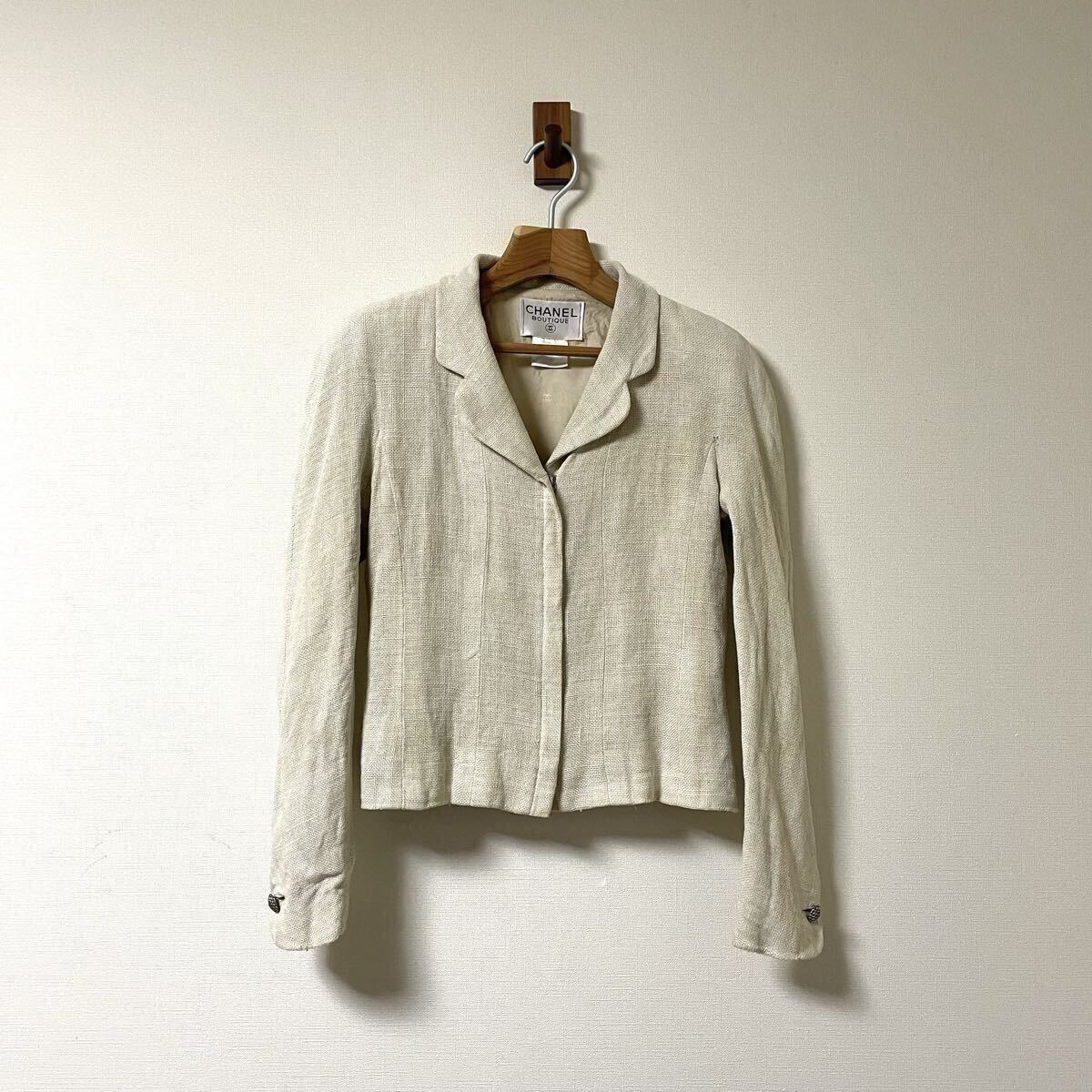 - ヴィンテージ CHANEL ココボタン ジップアップジャケット ブルゾン リネン ベージュ