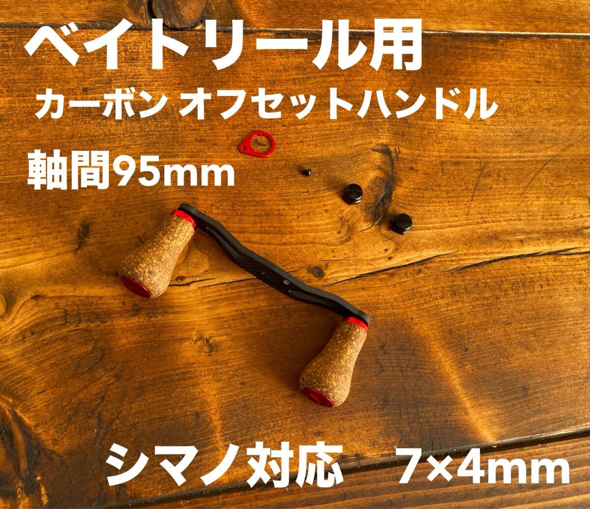 - カーボンオフセットハンドル コルクノブ レッド 軸間95mm シマノ対応