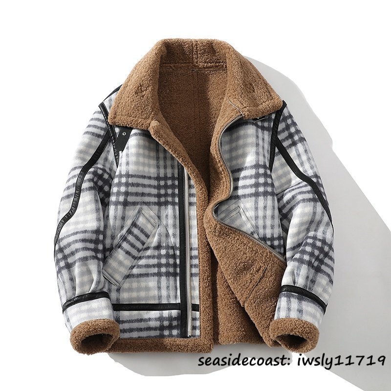 - 超希少◆ムートンコート 冬新品 フライトジャケット 暖かい 厚手 防寒 ブルゾン ファーコート アウター ジャンバー ライダース グレー 3XL
