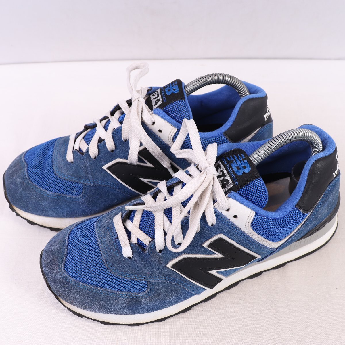 - 574 ニューバランス 25.5cm/new balance 青 ブルー 紺 ネイビー 白 ホワイト 中古 古着 メンズ スニーカー yy7361