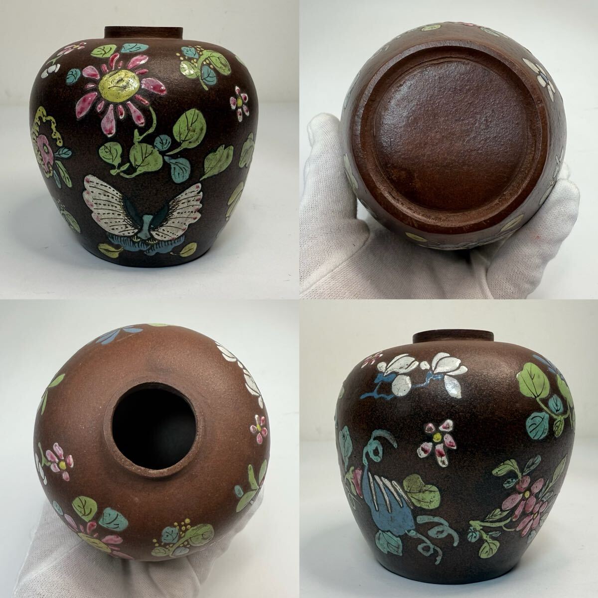 - XMF-中国古美術 時代物 色絵 紫砂 朱泥 彩絵 花草図 茶入 唐物 陶磁器 中国古玩 骨董品