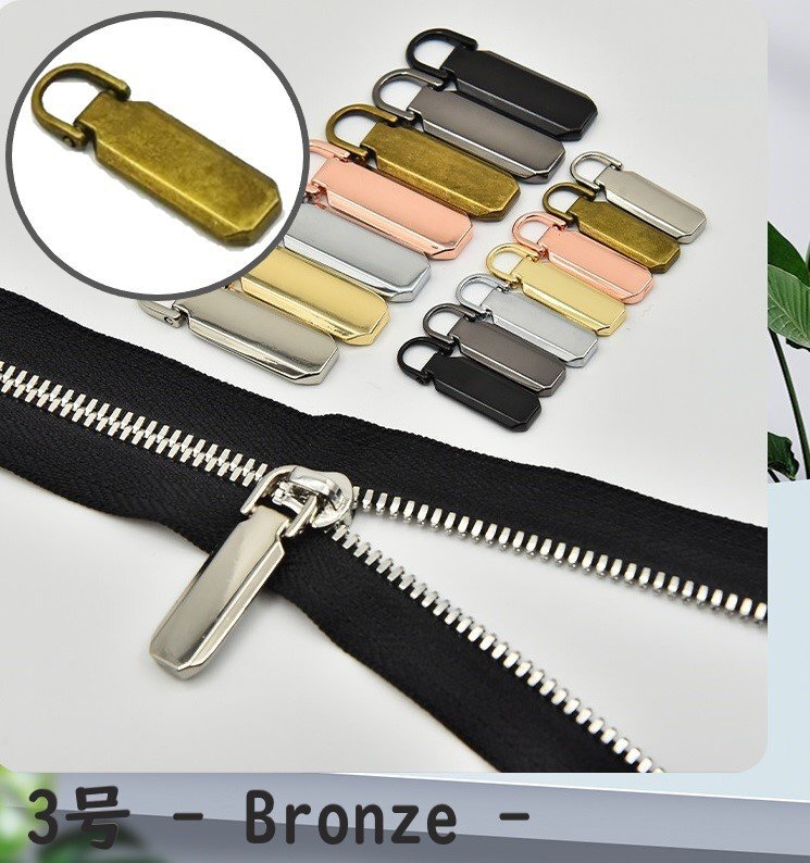 - ファスナー 3号 ブロンズ チャック 引手 引き手 持ち手 取っ手 ジッパー プルタブ ファスナートップ 修理 交換 取替 金属金具 財布 a523