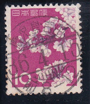 - 桜10円 櫛型印 鹿児島・吉田 36.4.15 初期使用 満月印