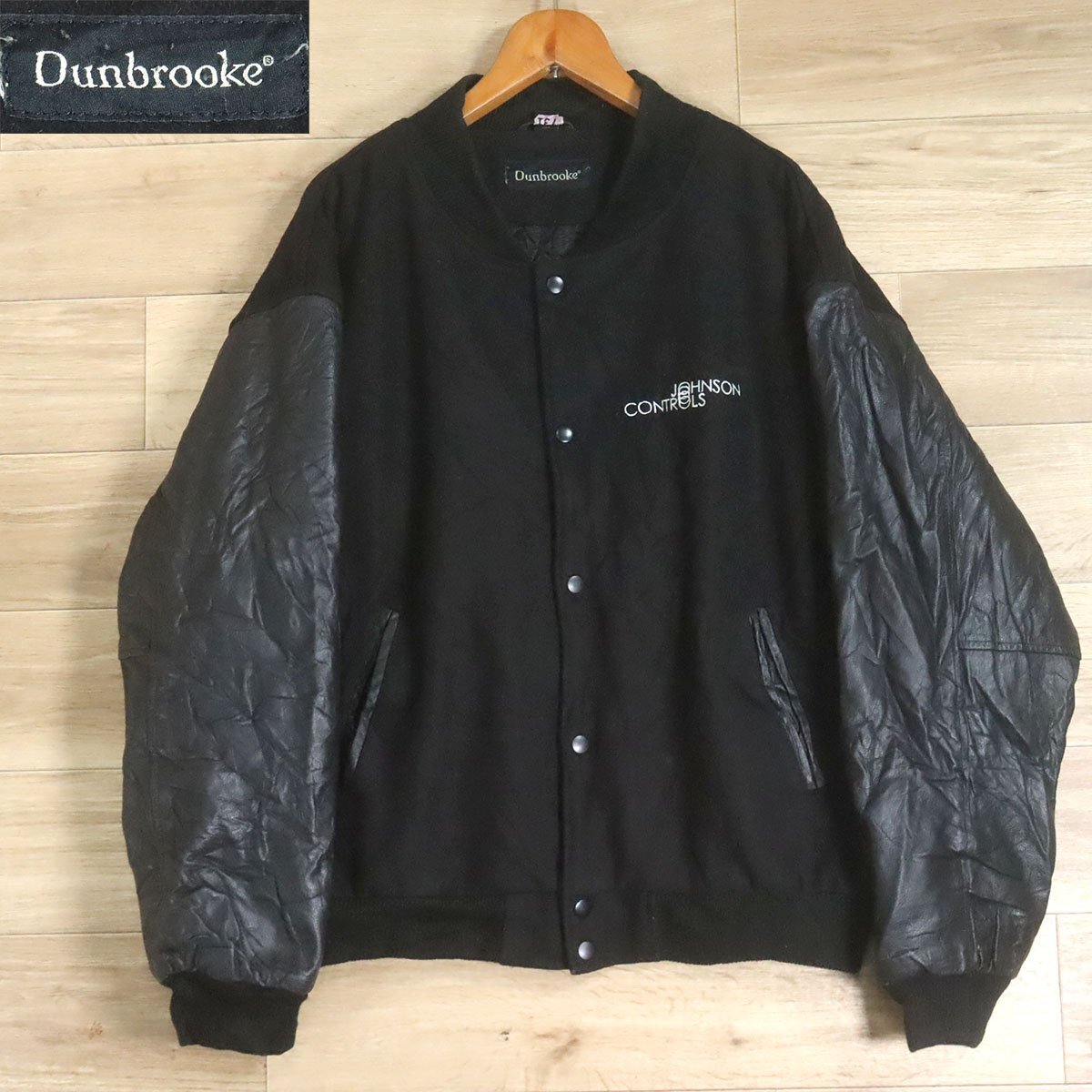 > %6K/S5.30-3 Dunbrooke 本革 袖革スタジャン バーシティジャケット アワードジャケット ブルゾン 刺繍 ブラック L