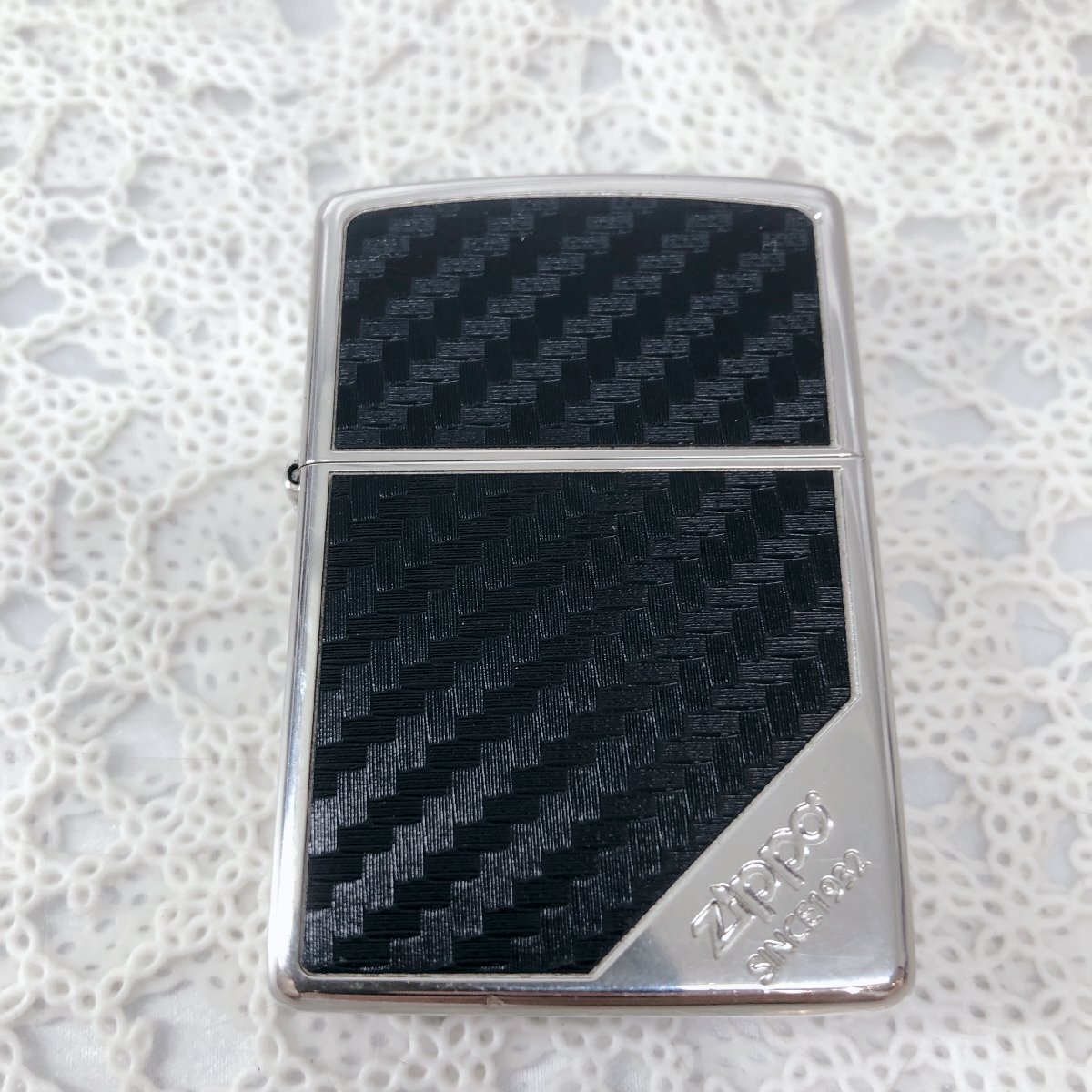 > 【美品/火花OK/KU】Zippo ジッポー ブラックカーボン 鏡面シルバー オイルライター 喫煙具 IS1109/003
