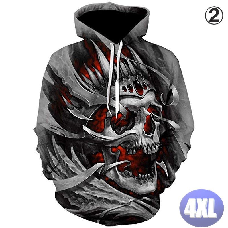 - フード付き ドクロパーカー カラー2 4XL トレーナー アウター 防寒 n716