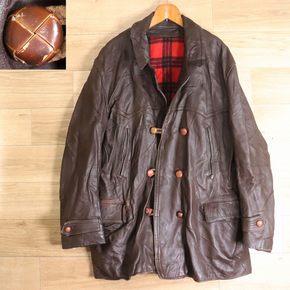 > %4K/Y5.13-4 ユーロ古着 ダブルブレスト レザーカーコート 本革 レザーコート レザージャケット 革ジャン 皮ジャン 54