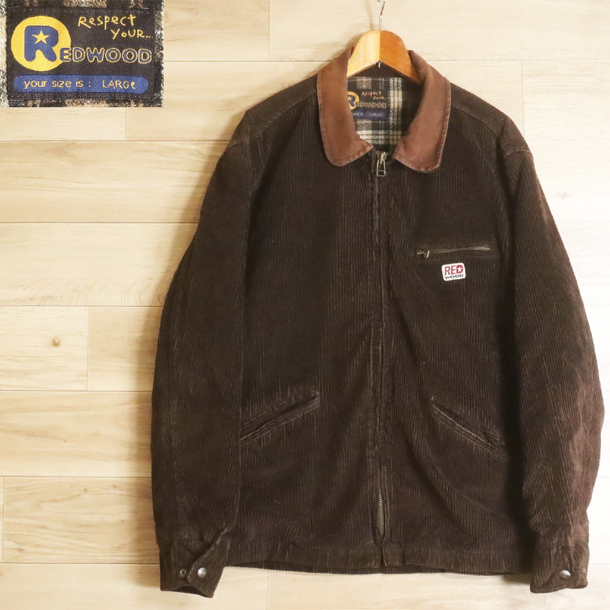 > M12O/O5.2-5 REDWOOD コーデュロイジャケット 裏チェック ワークジャケット ジップアップ ジャンパー ブルゾン メンズ L
